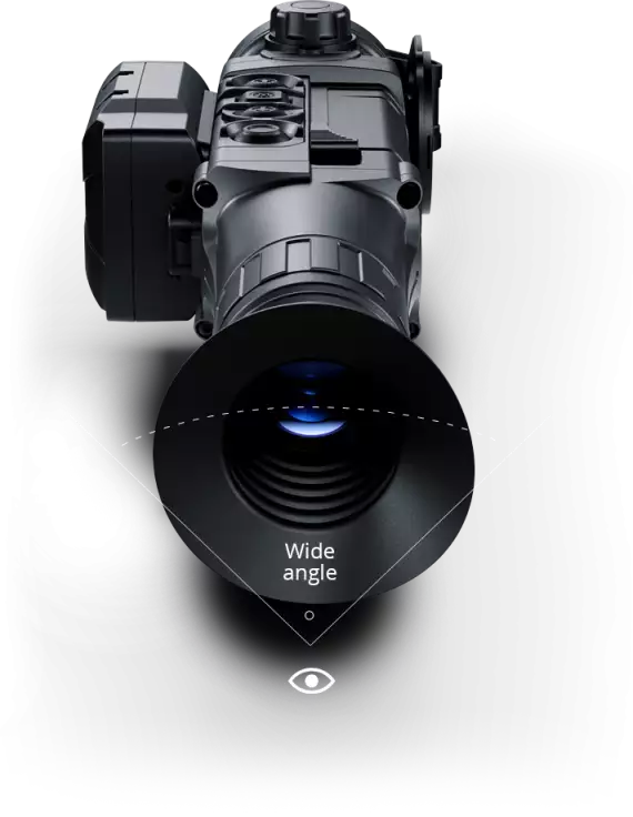 Vidno polje širokokotnega okularja s šestimi lečami, uporabljenega v LRF 2 XP50, je 20 % večje od njegovega predhodnika. V kombinaciji z AMOLED zaslonom v HD kakovosti okular ponuja bogato in globoko zaznavo slike.