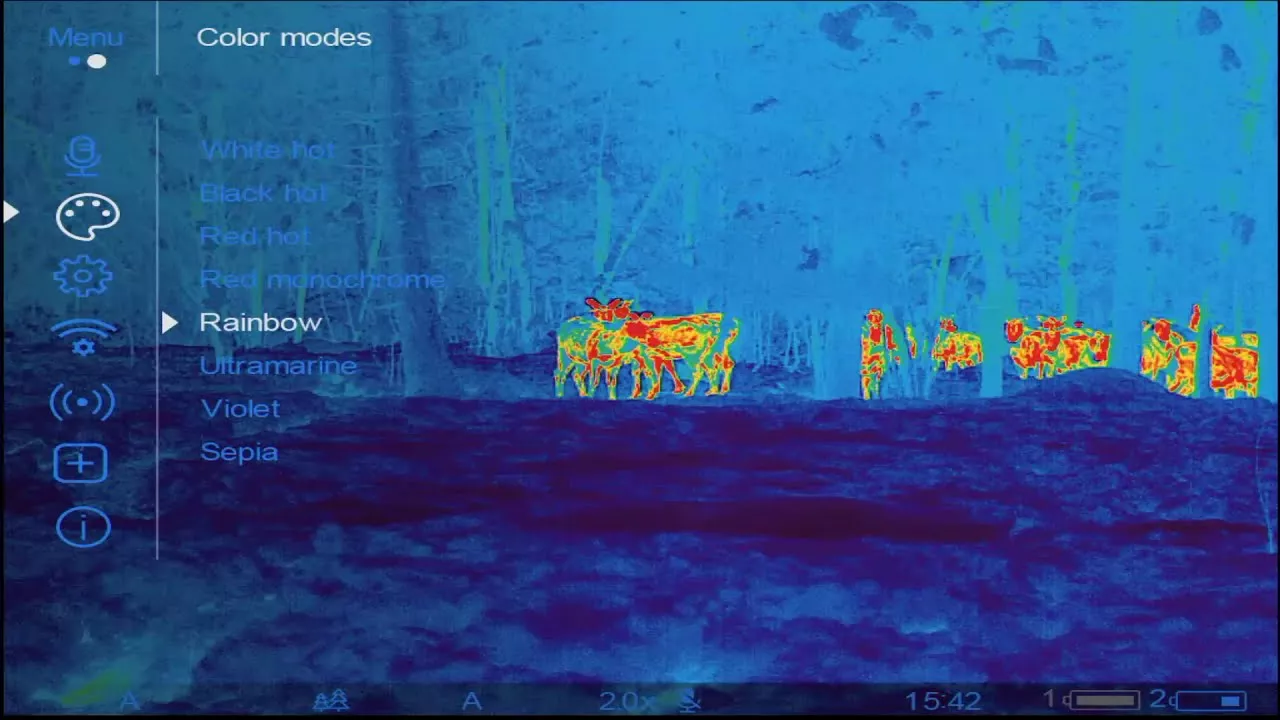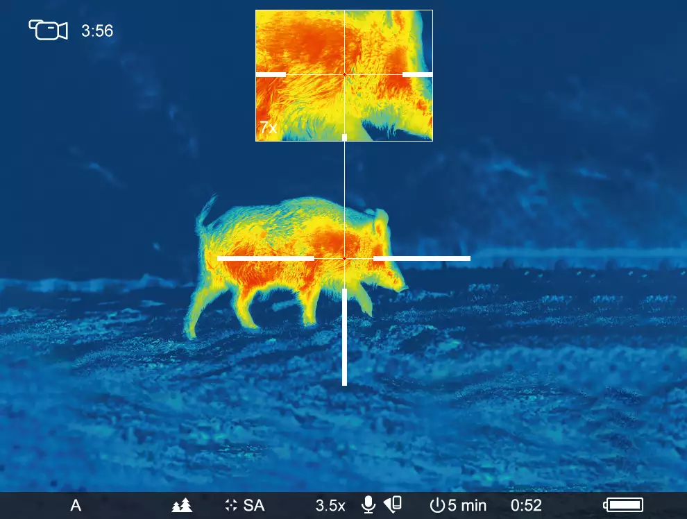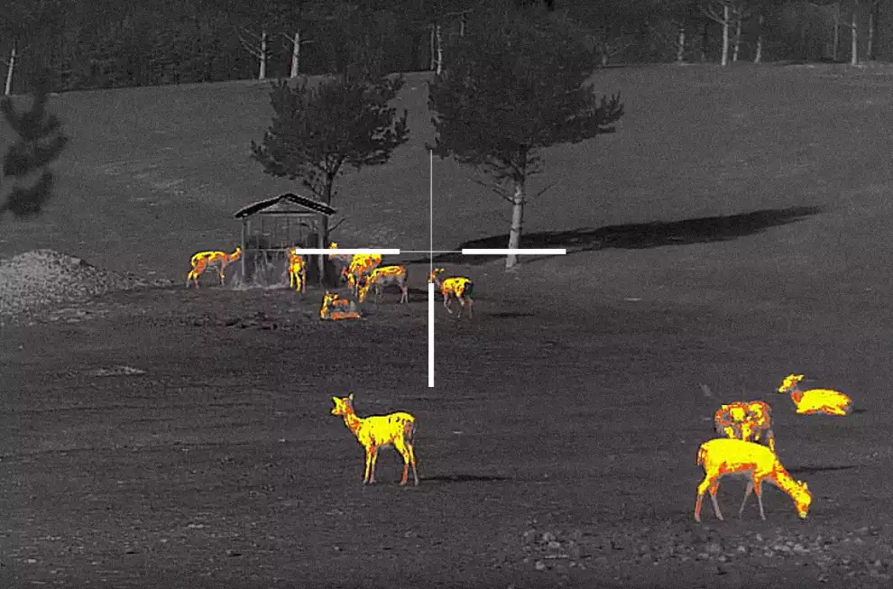 Ostre toplotne slike z visokim kontrastom za boljšo identifikacijo živali, njihovih okončin in celo najmanjših podrobnosti, kot so veje, listi, trava in zemlja.